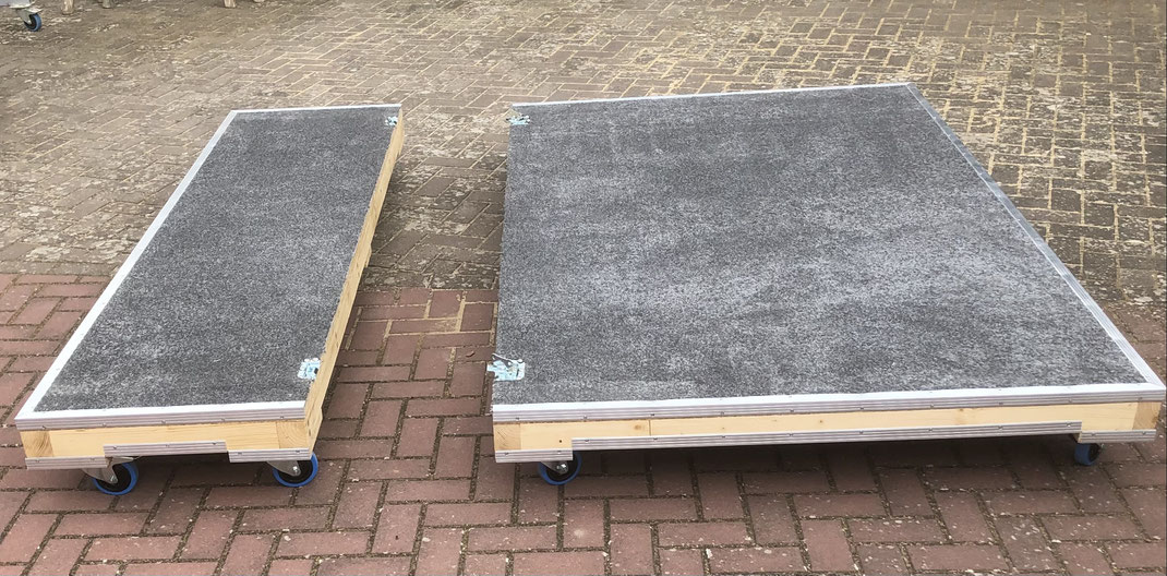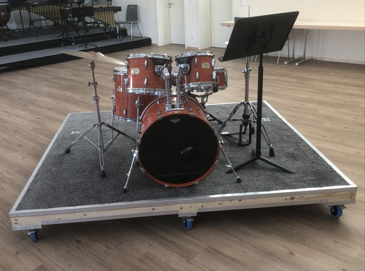 Nicht in jedem Proberaum kann man ja alle Instrumente stehen lassen. Besonders nervig ist es, wenn man z.B. das Drumset hin und her tragen muss. Deshalb haben wir uns gedacht, ein Rollpodest ist die beste Lösung.