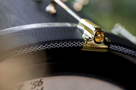 Bassdrum Spannreifen Um unsere Bassdrums optisch zu vollenden, beziehen wir die Spannreifen mit Leder. Diese können auch gesondert bestellt werden. Lederfarbe, Nahtfarbe, Größe - Ihre Ideen werden umgesetzt.